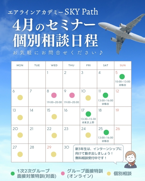 新卒生の就活は、インターンシップやすでにそこからの早期選考に進み、昨年度より確実に速く進んでいます。エアライン業界も例外ではありません。「やる気はあるけど、何から始めていいかわからない…」「周りと比べて自信がない…」「自分の強みが定まらない」 そんな人はぜひ、ご参加くださいね。